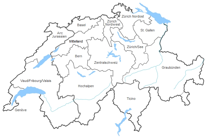 Die zweite Sichtweise legt den Fokus auf 14 lokal-regionale Medienräume - z.B. mit Basisinfomationen zum Raum, zu den wichtigsten Medienmarken für regionale Meinungsmacht und zur Macht der Konzerne im jeweiligen Medienraum.